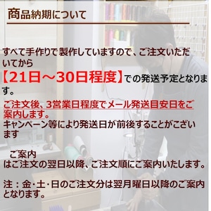 ご注文後の製作となりますので、ご注文日より14営業日(約3週間目安)となります。